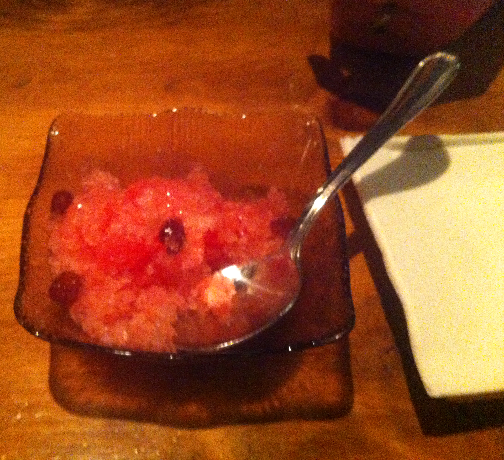 We finished the meal with watermelon sorbet. We could tell this sorbet was made in house; it burst with watermelon flavor. A truly refreshing way to end such a decadent meal!